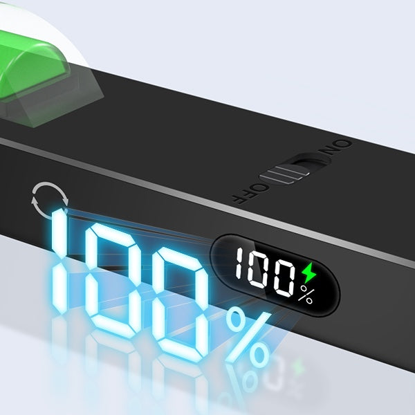The modern digital display shows battery percentage, ensuring you are always aware of the lamp's status